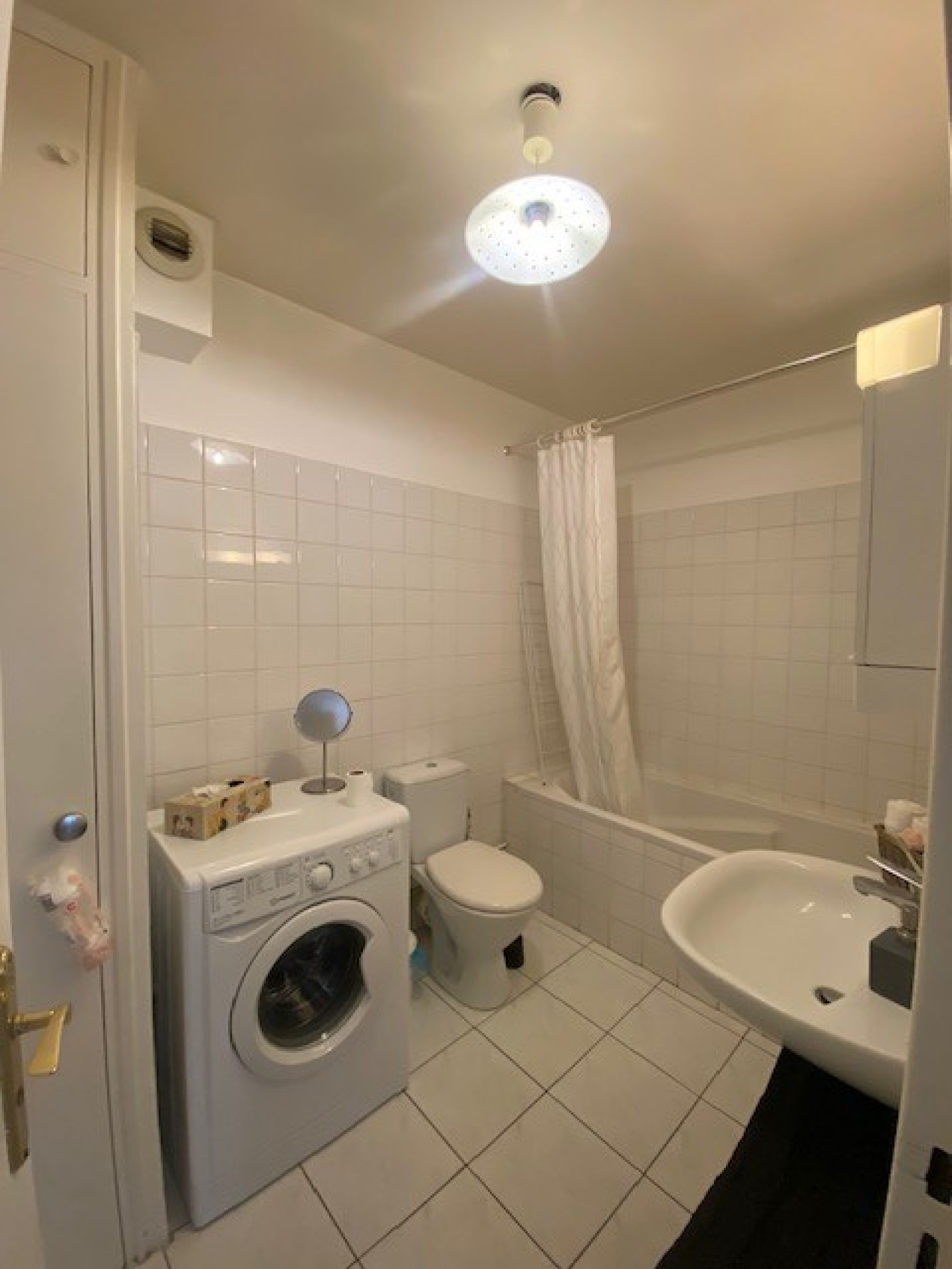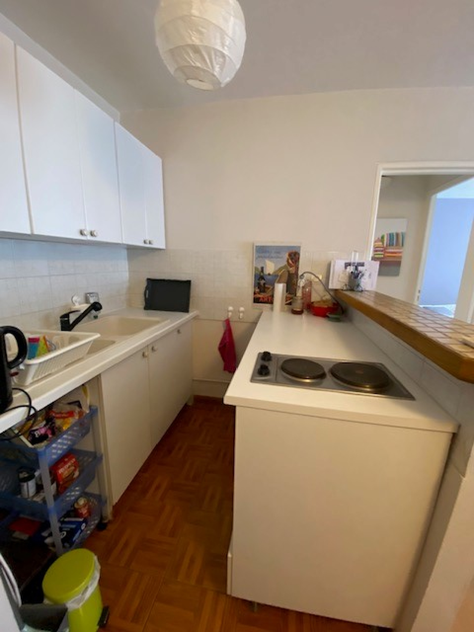 Au 113 RUE BOILEAU, 1er étage sans ascenseur, joli T2 de 36 m2 entièrement meublé avec soin, comprenant une cuisine ouverte sur le salon en parquet, une chambre avec penderie murale et une salle de bains avec baignoire, vasque et toilettes.