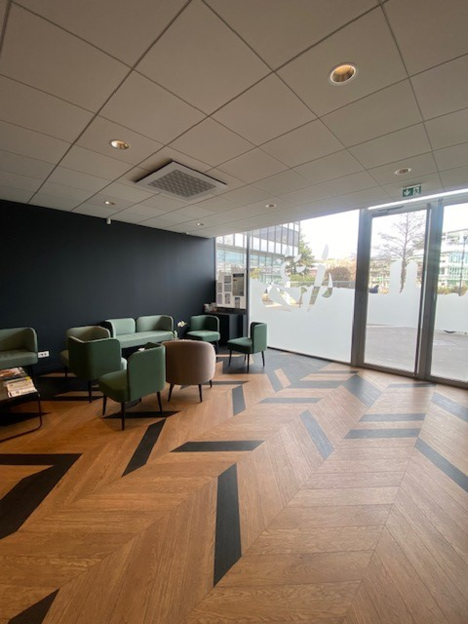 Prestations: cloisons vitrées, chauffage collectif, climatisation, fibre, baie de brassage informatique, alarme.