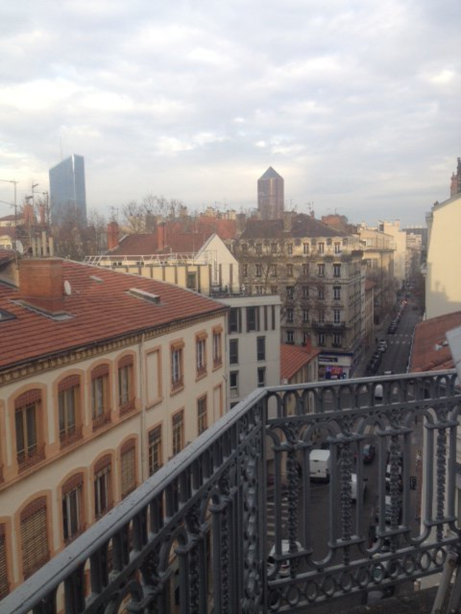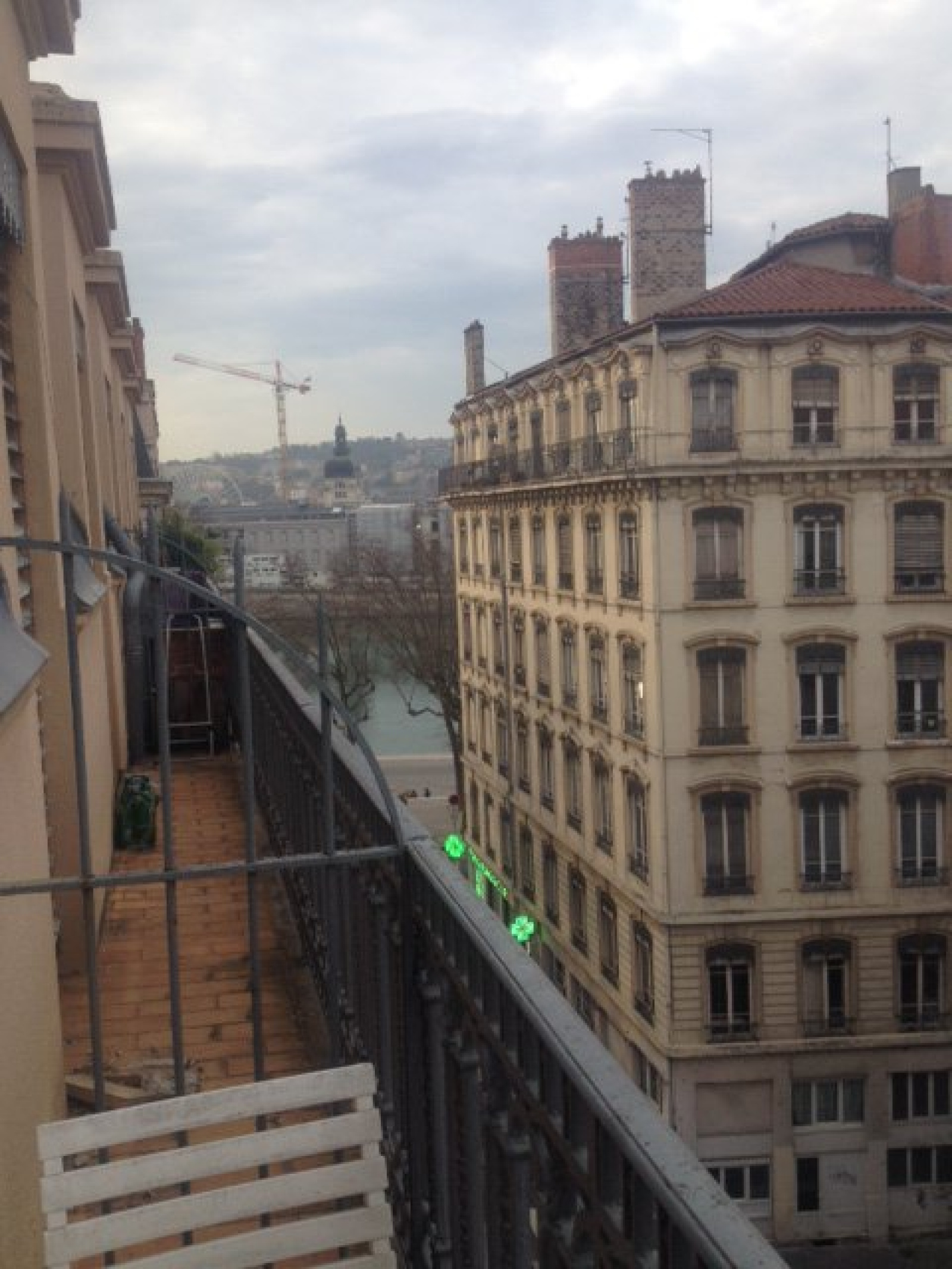 IMMEUBLE BOURGEOIS T2 48.86 M2 AU DERNIER ETAGE ASCENSEUR ET BALCON FILANT AVEC VUE exceptionnelle SUR LE RHONE et tours Part Dieu.