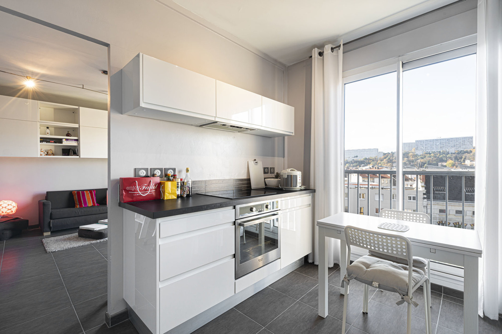 Emplacement idéal sur les quais avec une vue dégagée côté Ouest sur les hauteurs des Mont d'Or, ce T1 de 38 m2 au dernier étage, vous offre l'avantage d'une belle cuisine équipée séparée avec son cellier, une pièce à vivre de 18 m2 baignée de lumière, une vue à couper le souffle, et une salle de douche carrelée.