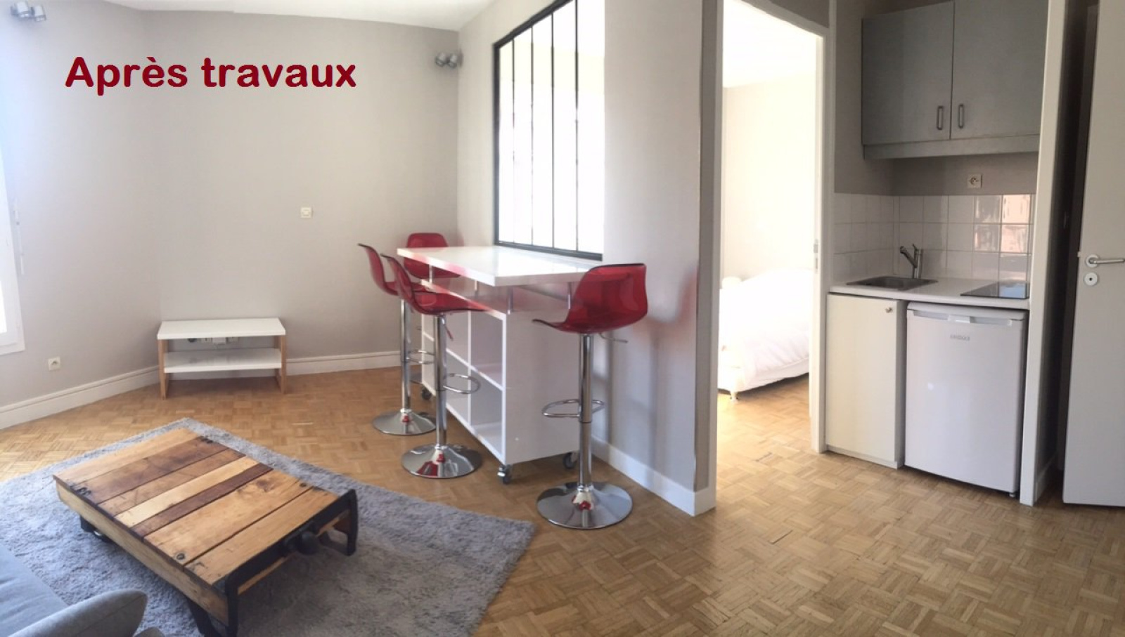 Vendu en 48 h / A quelques pas du quai Claude Bernard et des facultés, studio de 32 m2 à rénover au 4° étage sur 7 au total avec vue dégagée au sud – composé d’une pièce à vivre spacieuse (possibilité de création d’un petit espace nuit), un coin cuisine et une salle d’eau avec douche et WC. Excellent investissement locatif. DPE D - Copropriété de 86 lots principaux – charges annuels de 1 248€