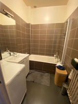La salle de bains dispose d’une baignoire, tandis que les toilettes sont séparées.