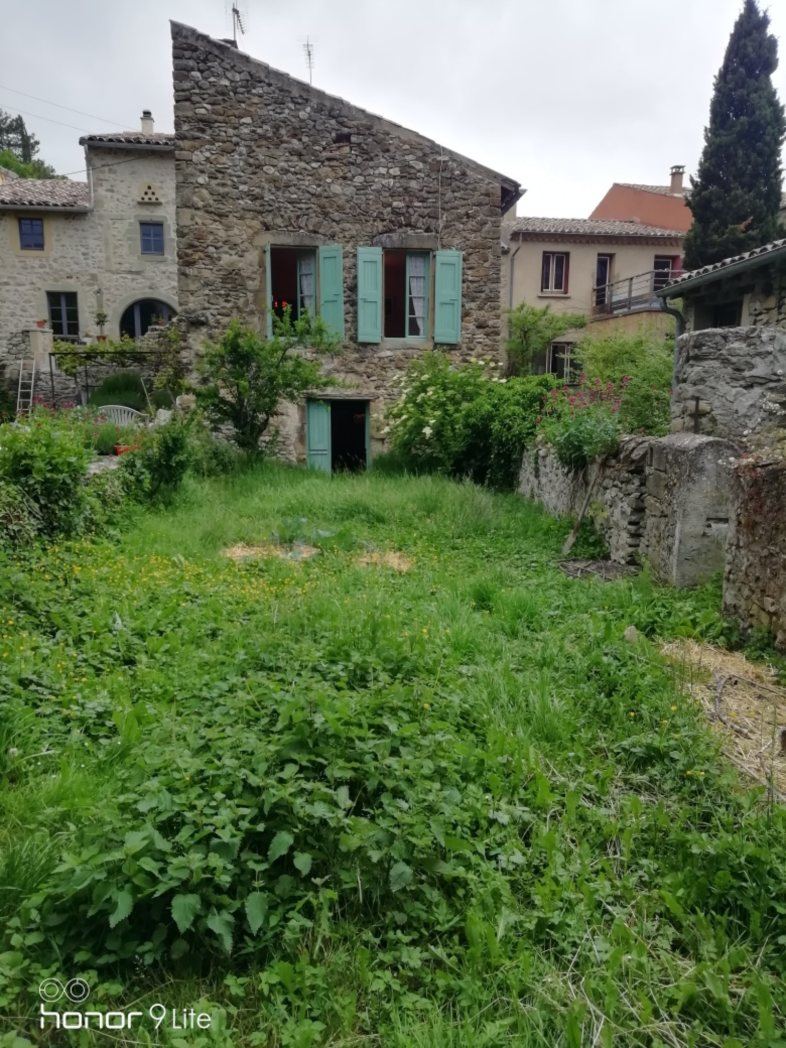 1 chambre, une pièce de vie, une petite cuisine, une salle de bain sommaire et une piéce d'environ 20m2 en rez de chaussée à usage d'atelier donnant sur le jardin d'environ 80m2, le tout en plein coeur du vieux village de Bourdeaux. Exposition Sud.