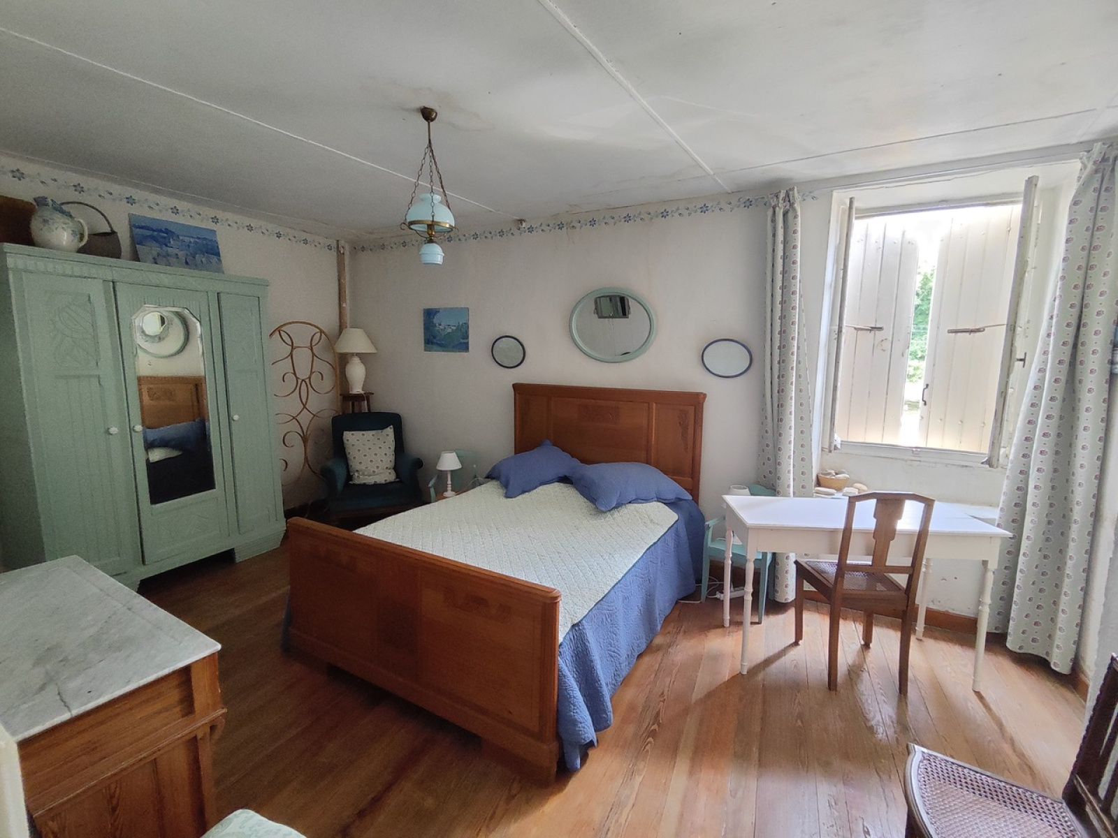 Huisseries anciennes en simple vitrage, mode de chauffage à remettre au goût du jour (poêle à bois), assainissement à moderniser.