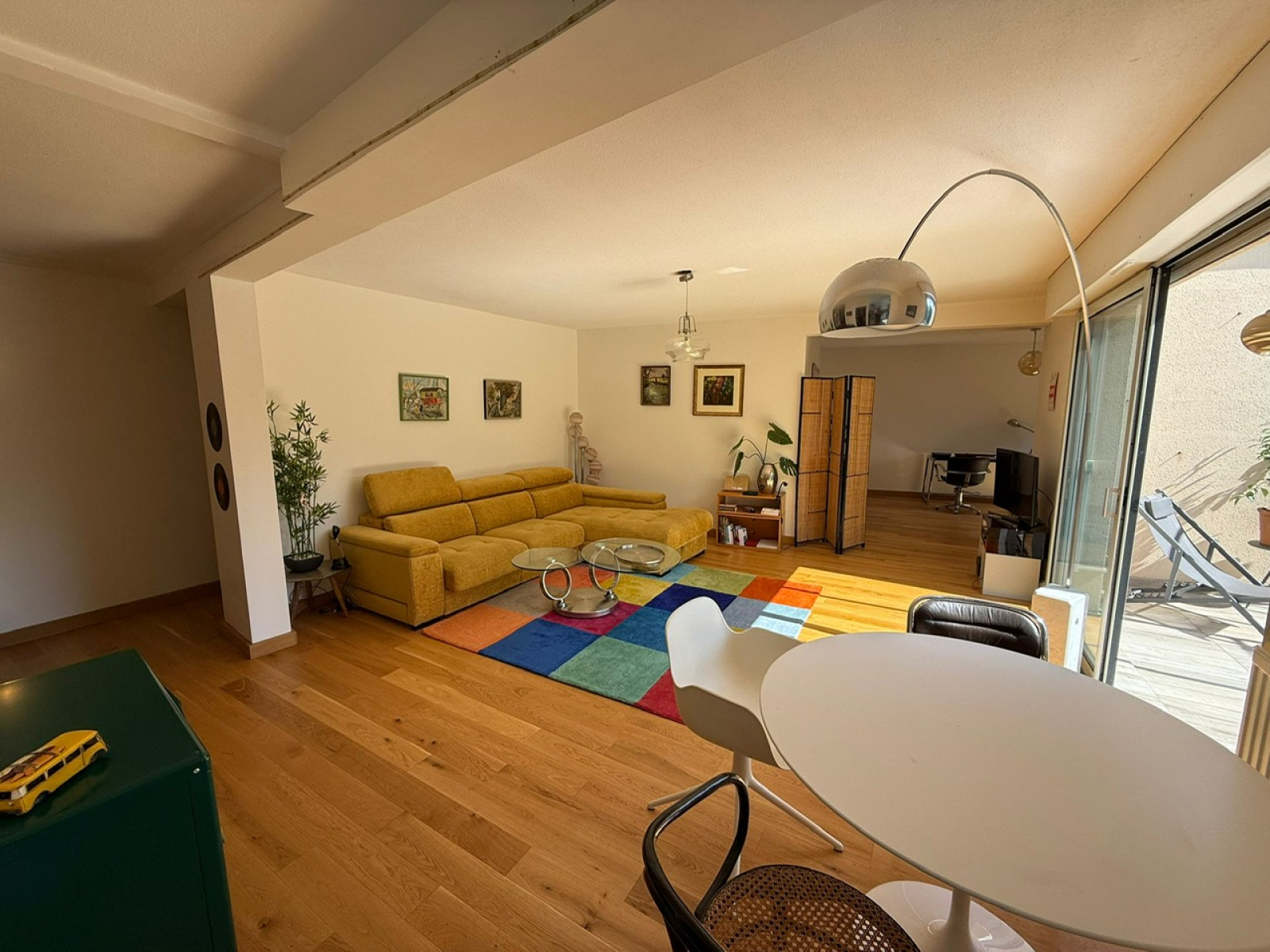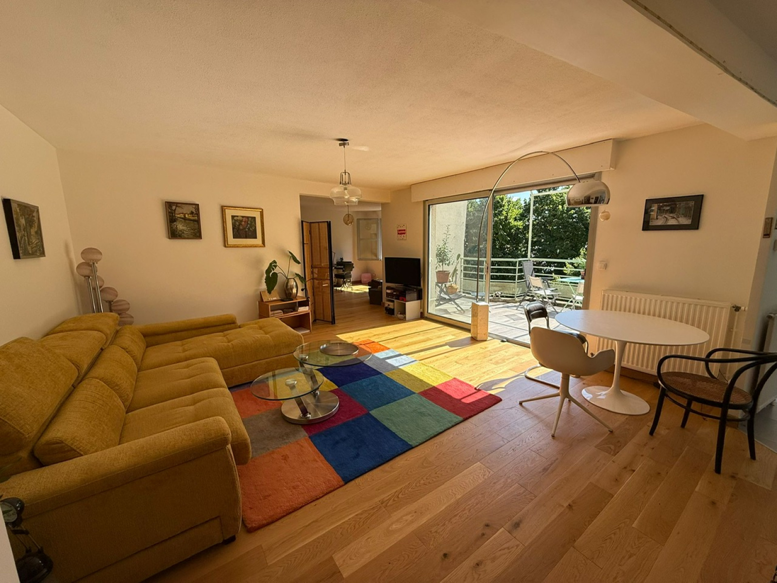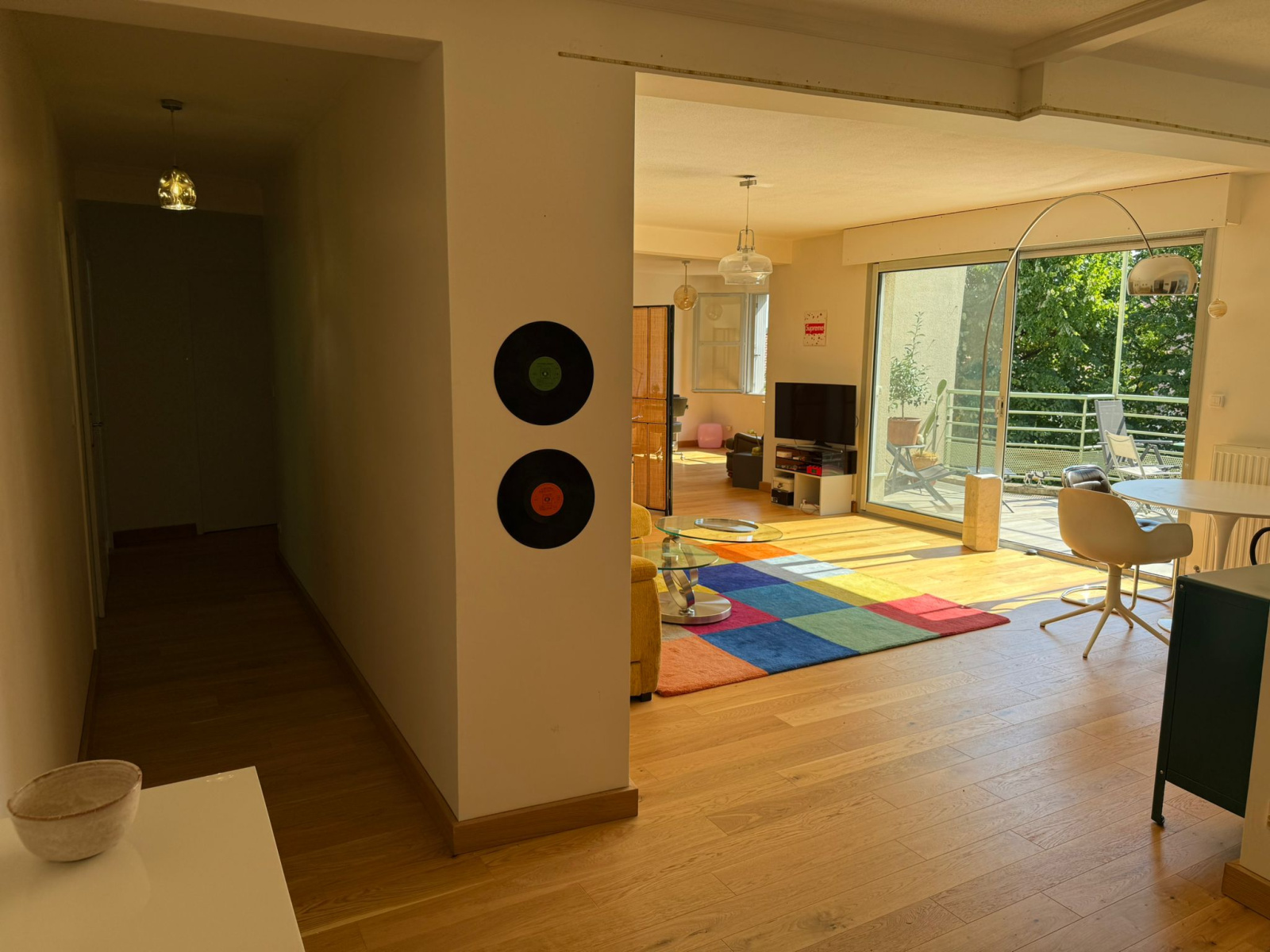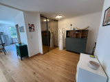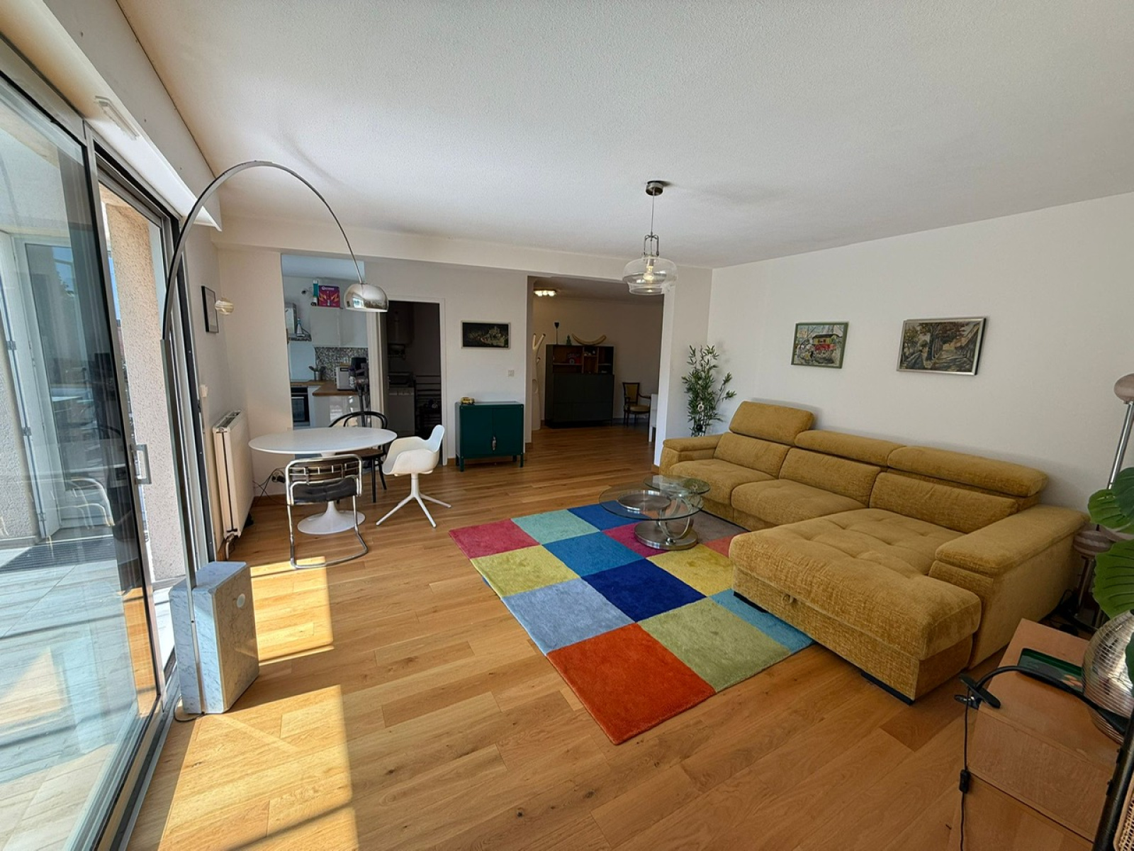 Grande terrasse de 16m2 sur salon/séjour d'environ 25m2 et cuisine séparée de 11,5m2. hall d'entrée avec panderie,
