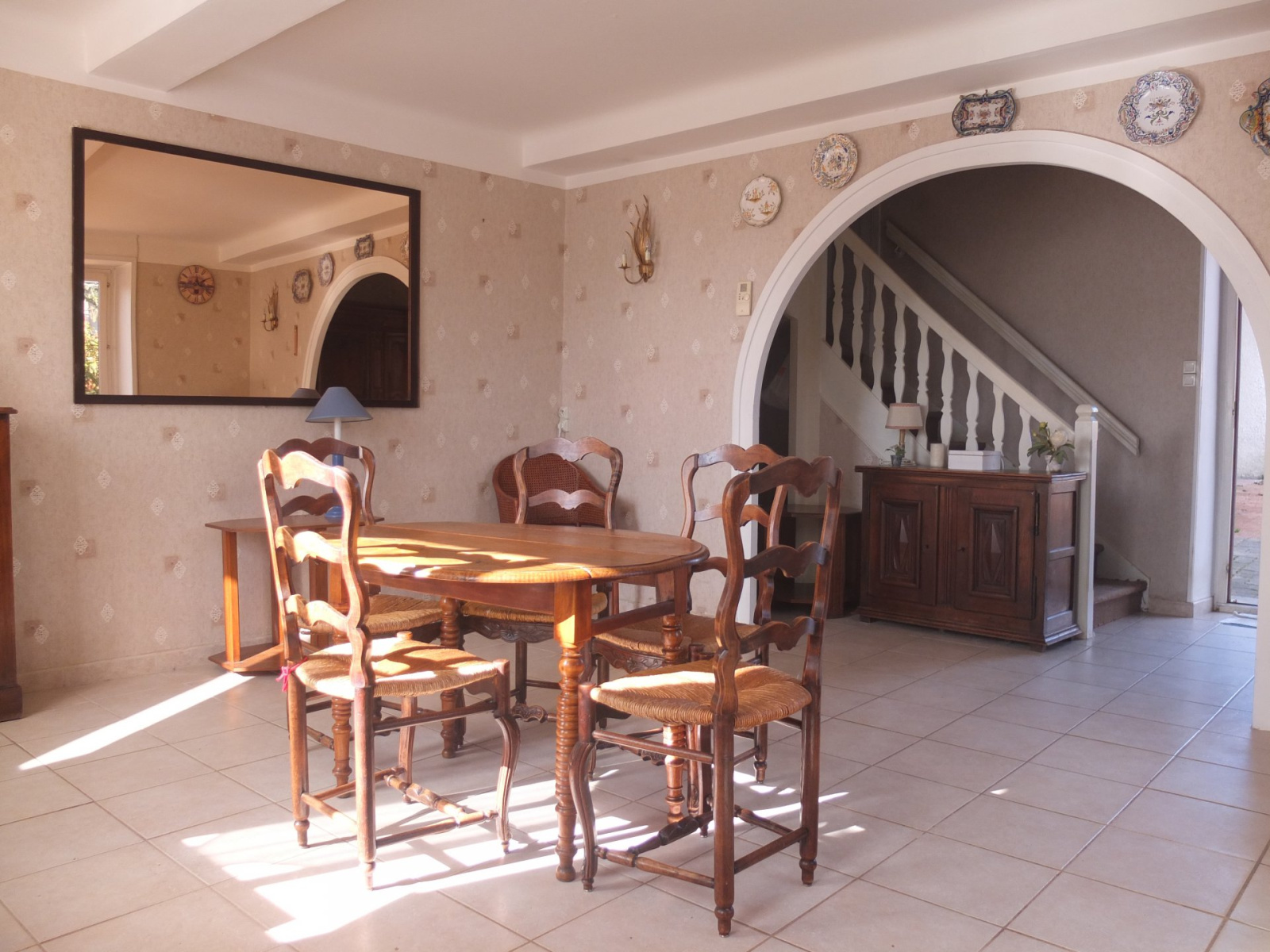 La maison lumineuse et soignée comprend au rdc une cuisine, une arrière cuisine, salle à manger, 2 chambres et une vaste salle de bains au 1er étage, et 2 autres chambres au 2ème étage, avec combles.