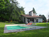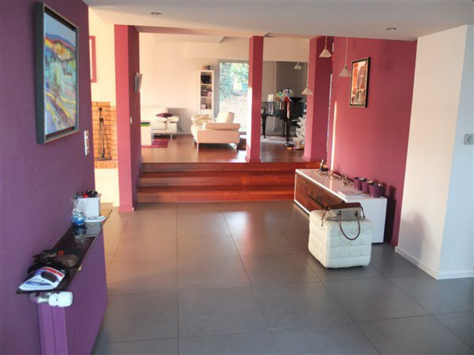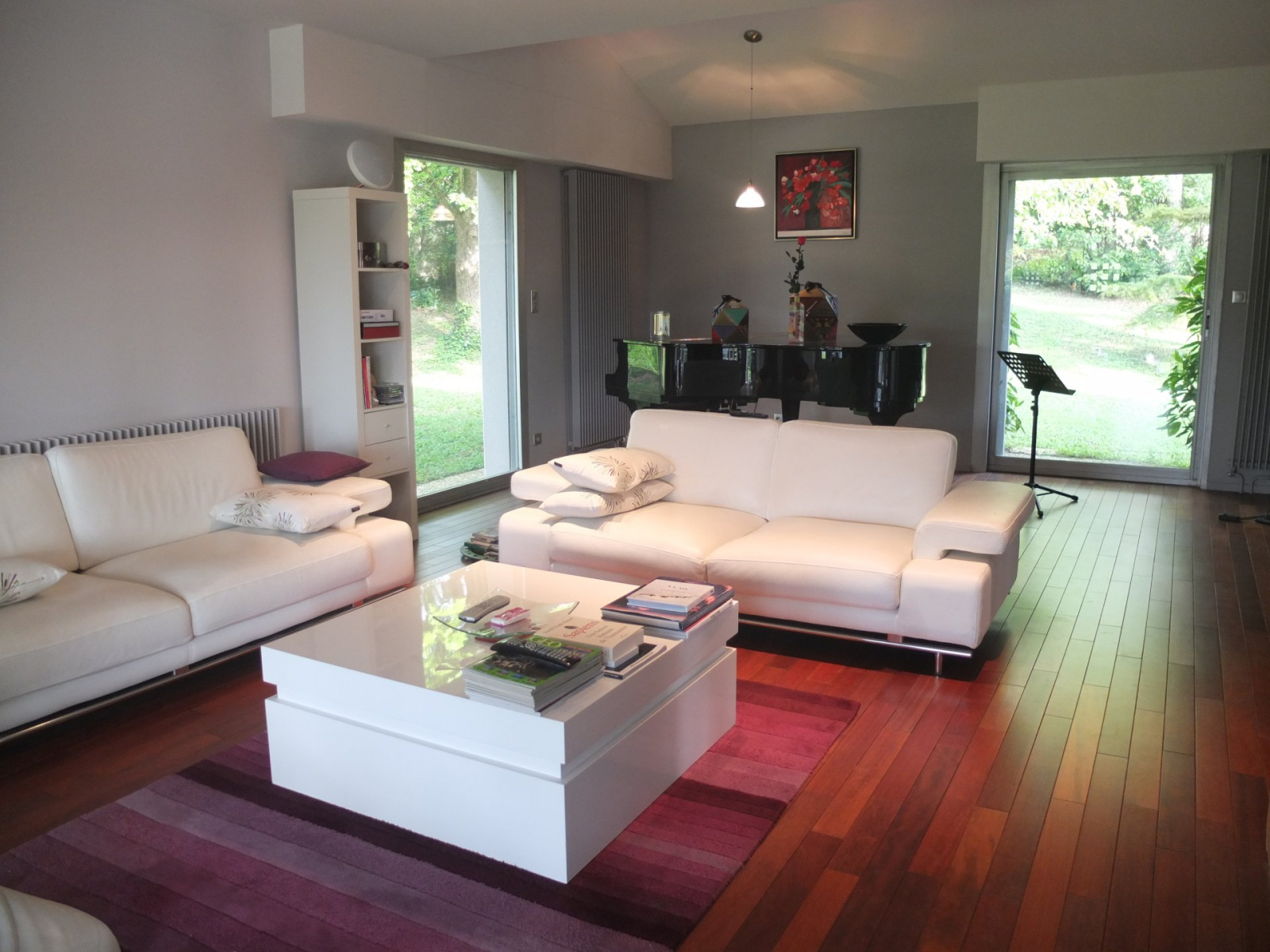 Propriété contemporaine Collonges au Mont d'Or Limite Saint Cyr au Mont d'Or, Magnifique propriété rénovée de 300 m² plus dépendances, vue dégagée sur les Alpes, exposition idéale au sud avec piscine chauffée au sel (10×5), sécurisée, exceptionnel terrain clos et arboré de 3155 m². La maison dispose de 4 chambres climatisées, 3 salles de bains, un vaste séjour avec cheminée ouvert sur terrasse et jardin, une cuisine moderne haut de gamme. Le rez-de-chaussée est aménagé en appartement et/ou local professionnel de 45 m² avec entrée indépendante. Au rez-de-chaussée, une salle de billard, un local chaufferie (2 pompes à chaleur), une buanderie, garage 2 autos, et garage supplémentaire pour 2/3 autos. Rénovation de qualité, grandes baies vitrées pour un maximum de luminosité, électricité refaite, alarme, climatisation, 2 pompes à chaleur, prestations haut de gamme. Bus à 10 m pour Lycées, collèges..