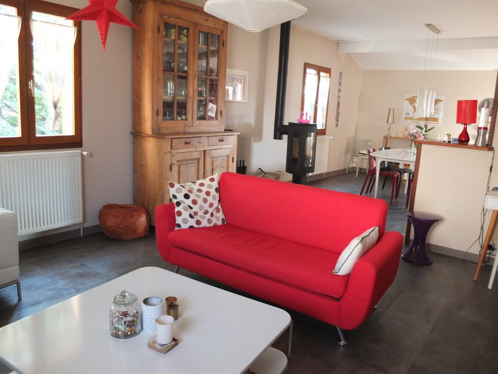 Maison avec cachet de l'ancien, 120 m2 habitable, 4 chambres et une salle de jeux 15 m2, cuisine équipée ouverte sur la pièce à vivre de 45 m2, avec un accès à la terrasse exposé à l'Est.