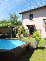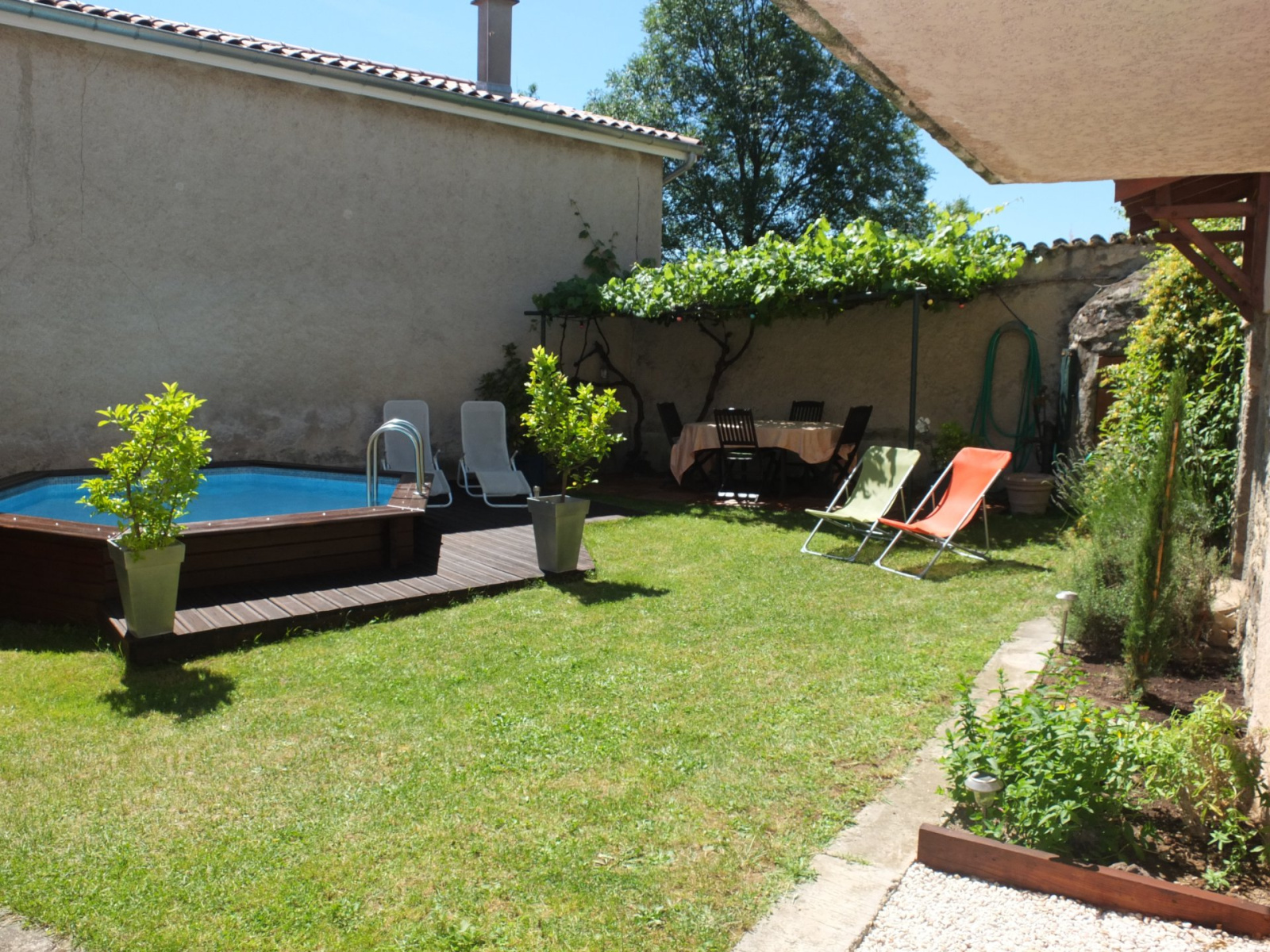 A l'abri des regards, un "jardin de curé" d'environ 200 m2 avec piscine semi-enterrée, un puits, au calme et sans vis à vis.