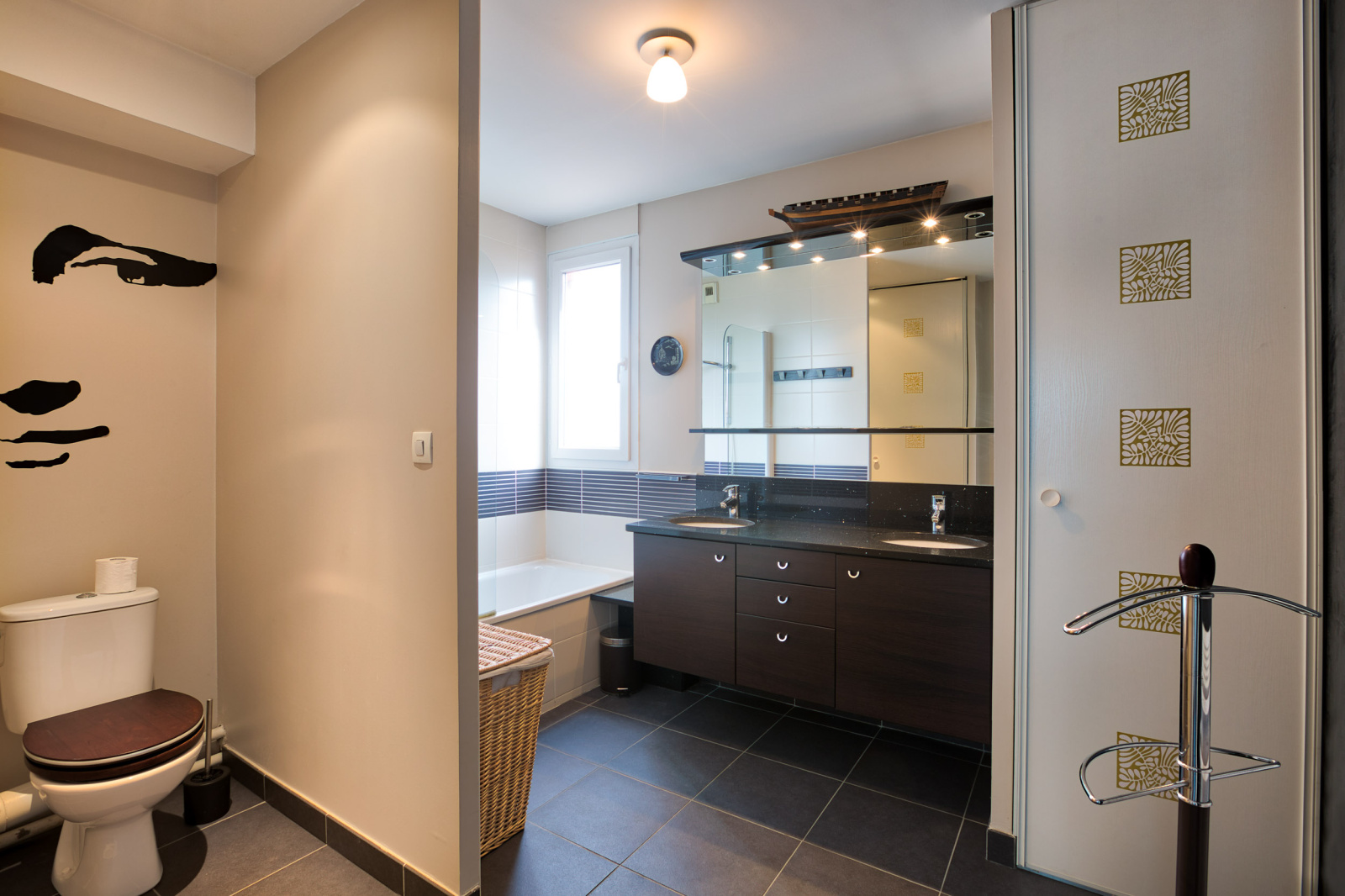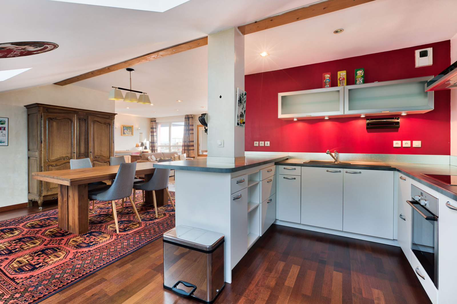 L'appartement de très bon standing offre une belle pièce de vie de 50 m2 avec une cuisine entièrement équipée ouverte, une pièce buanderie avec toilettes.