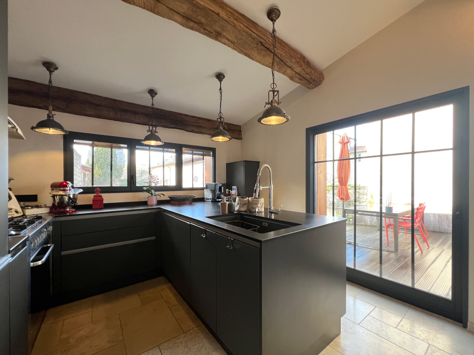 Cette maison familiale dotée d'un charme exceptionnel, respecte l'intimité de tous grace à ses espaces et ses étages dédiés à chacun. Sa spacieuse pièce de vie de 45 m² en double exposition Est/ Ouest vous invite autour de son chaleureux poele à bois pour l'hiver. Elle offre un acces direct à la terrasse et au jardin dont vous saurez profiter dès le printemps. Superbe cuisine entièrement équipée attenante au séjour et largement ouverte sur terrasse et jardin.