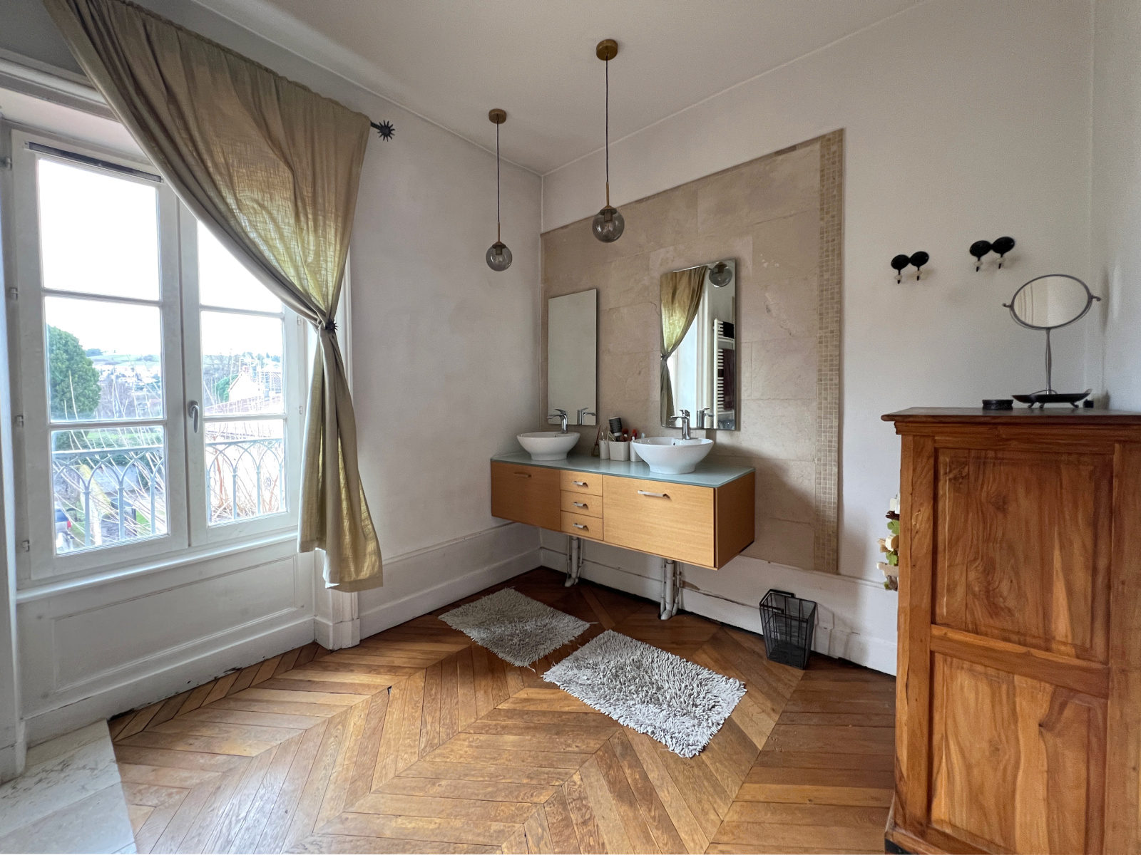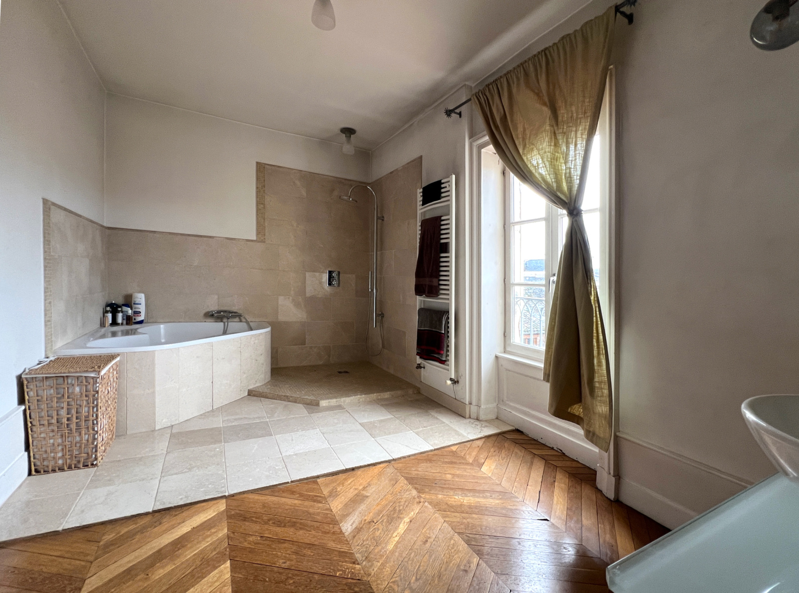 Un étage complet est actuellement réservé aux parents dont la chambre de 22 m² offre une double exposition. La salle de bains ne peut, elle aussi que vous séduire par ses volumes, sa pîerre naturelle, sa baignoire d'angle et sa douche. Un WC indépendant à ce niveau.
