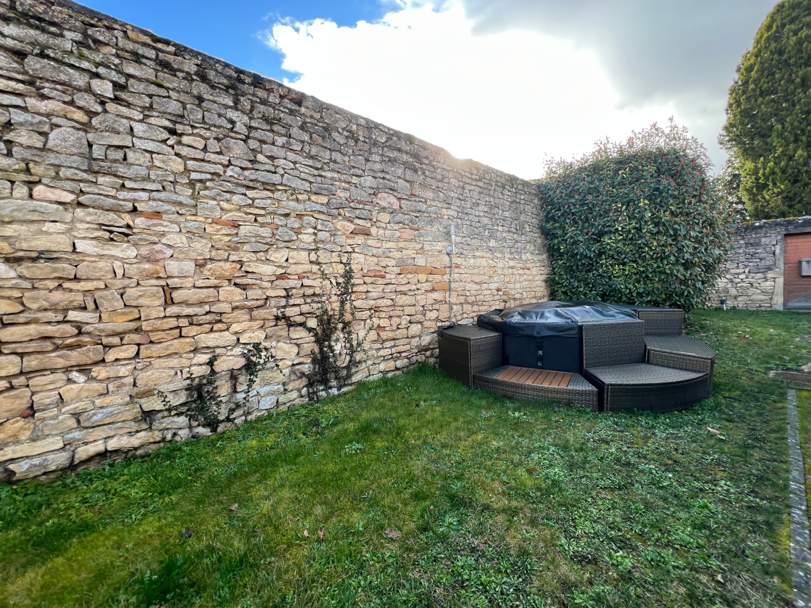 Une dépendance fait office de garage et de lieux de stockage. Le jardin clos de mur (en pierres) et arboré est à l'abri des regards.