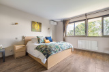 A l'étage, un espace nuit proposant actuellement une chambre de 22 m2 (à l'origine 2 chambres), sa salle de douche contemporaine, une seconde chambre de 14,50 m2, une salle de bains balnéo et toilettes indépendants.