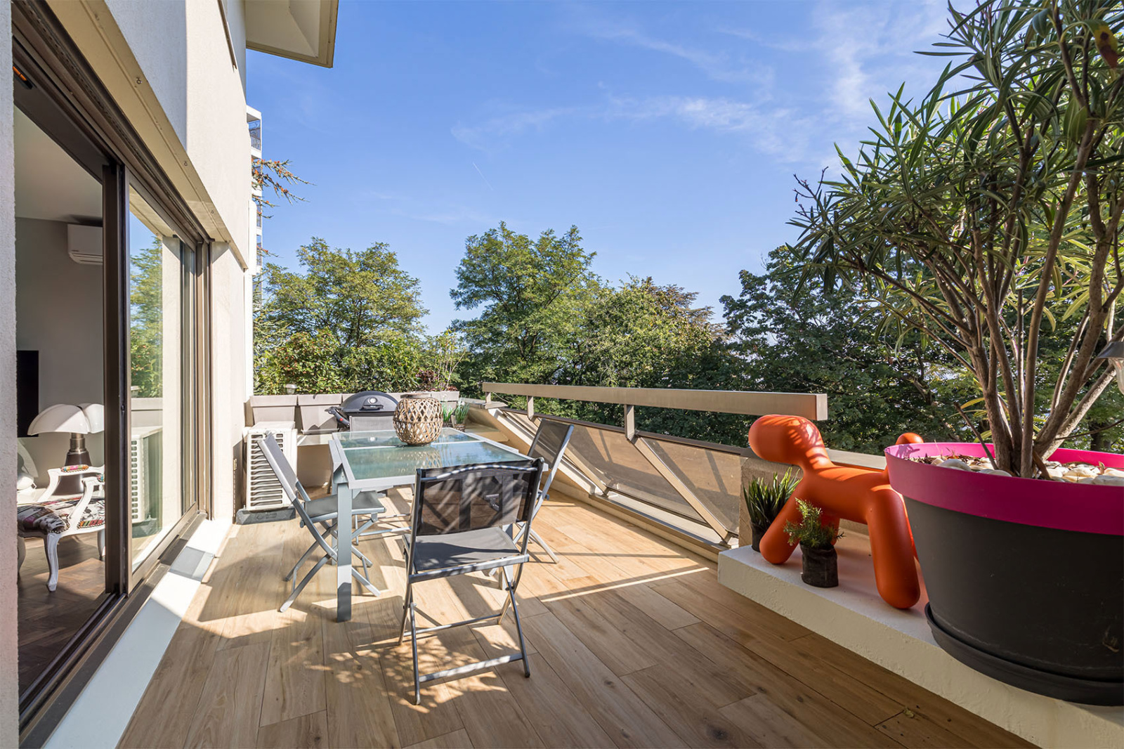 Niché dans une résidence de standing avec vue sur Lyon, cet appartement terrasse en duplex vous offre le calme et une magnifique vue à seulement 15 min de Bellecour.