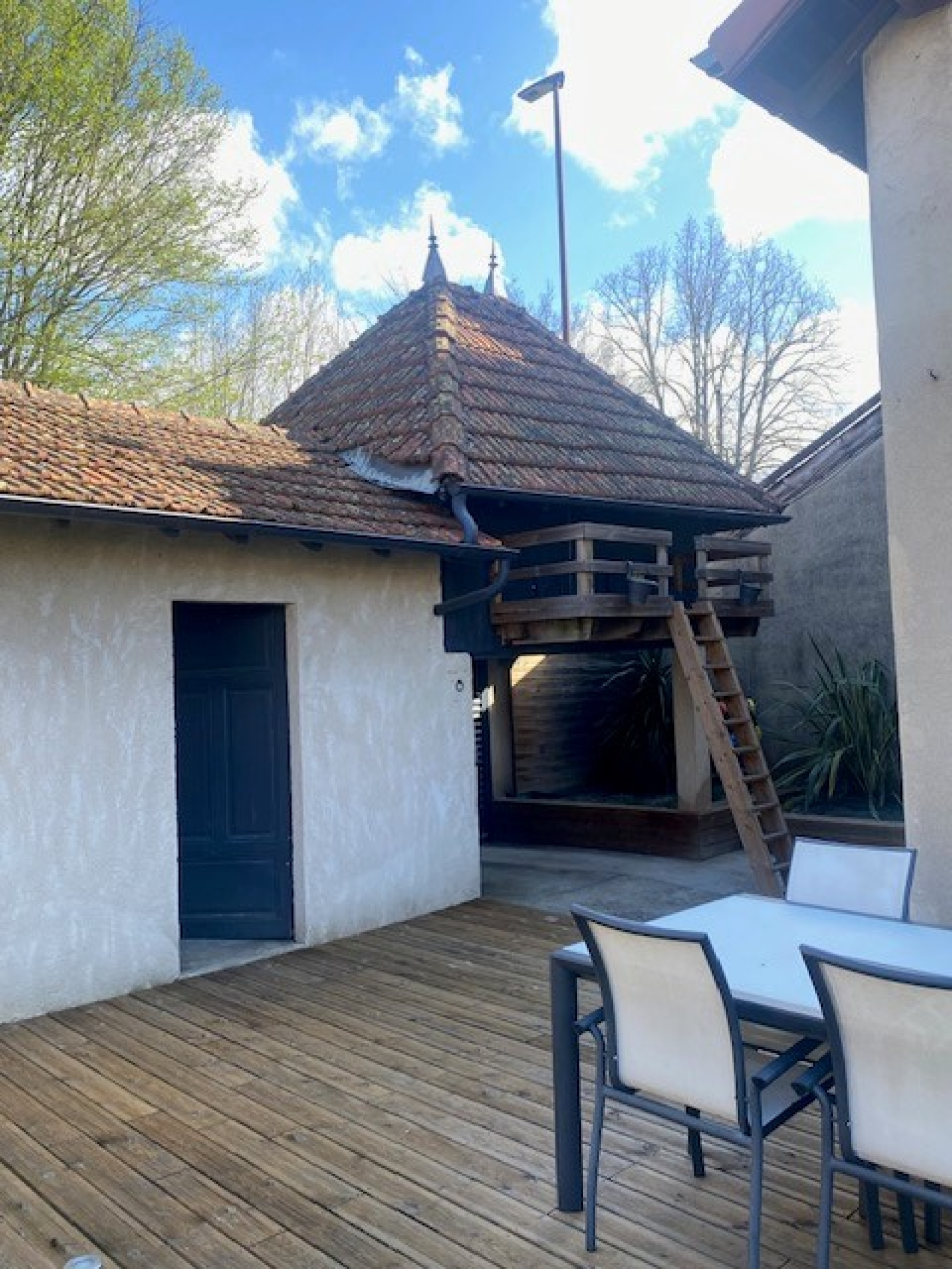 Dans le jardin, une dépendance de 28 m2 à udage de réserve, garage à vélos.... et une cabanne pour enfants perchée au dessus de la place de stationnement fermée avec portail automatique.